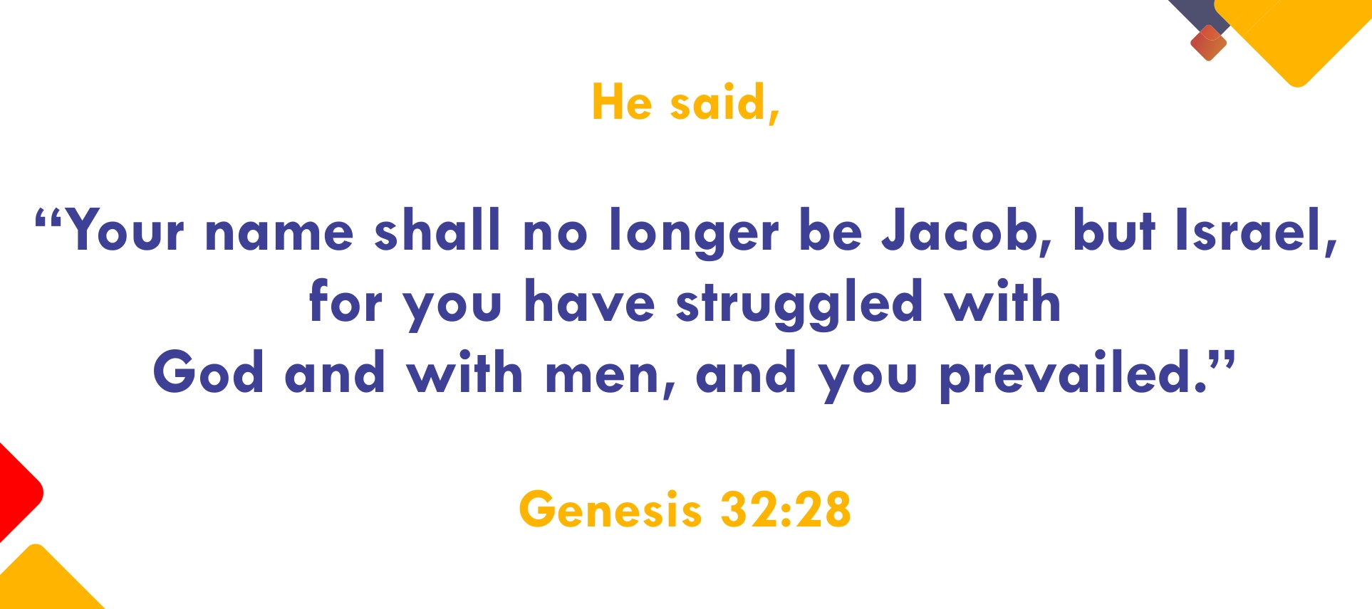He said, “Your name shall no longer be Jacob, but Israel, for you have striven with God and with men, and you prevailed.” Genesis 32:29